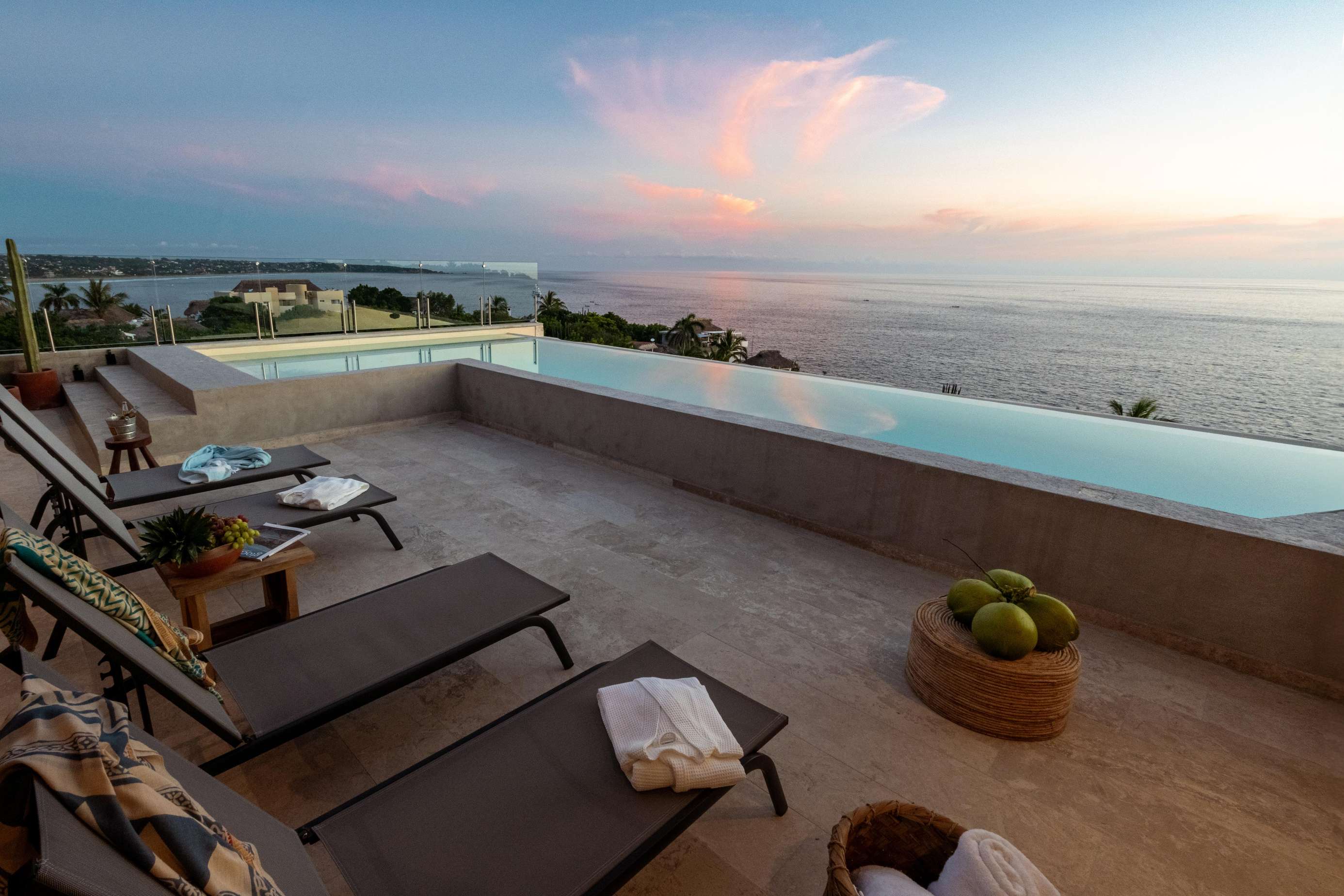 - Private Jacuzzi with Ocean Views – Unwind in your personal jacuzzi overlooking the ocean.
