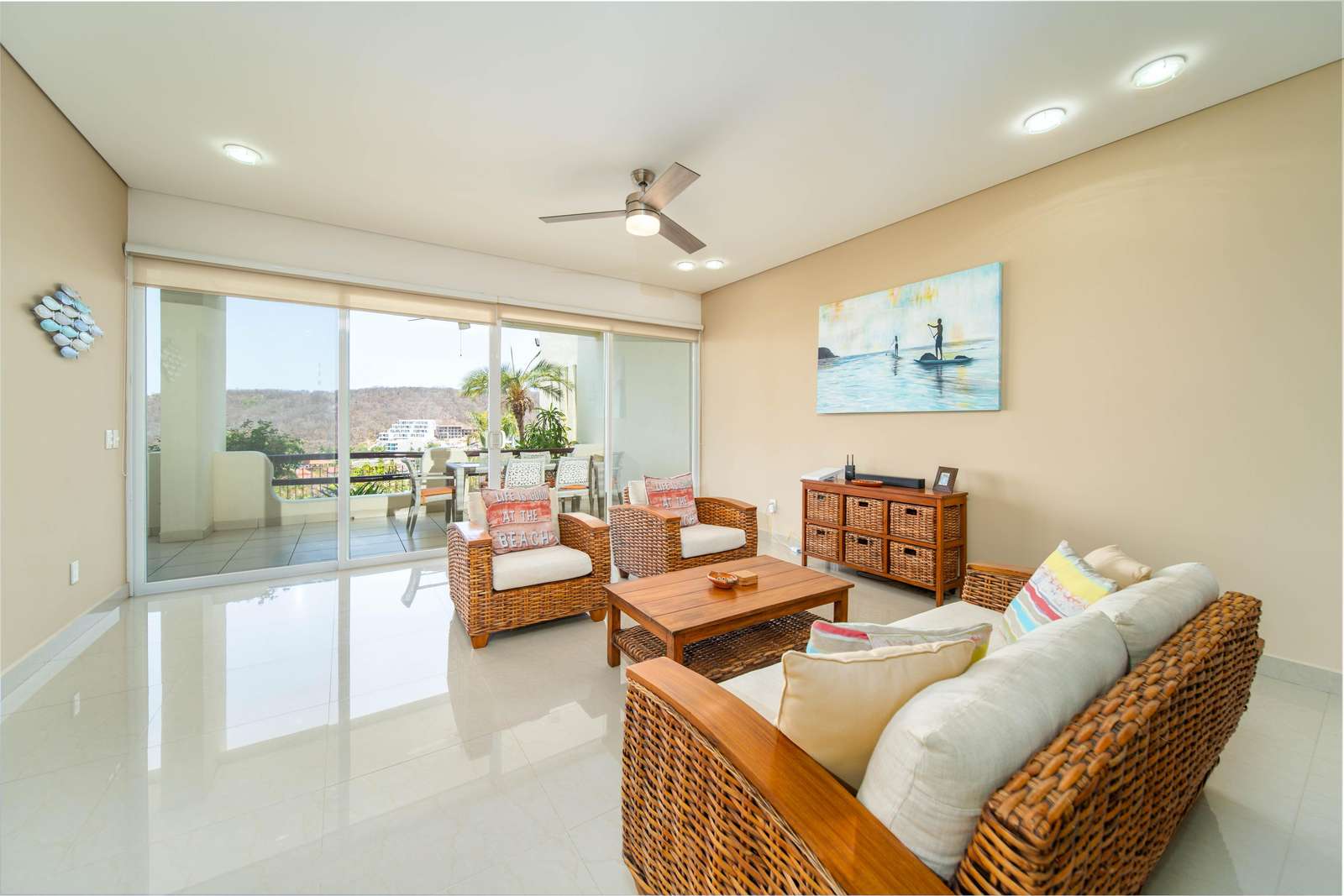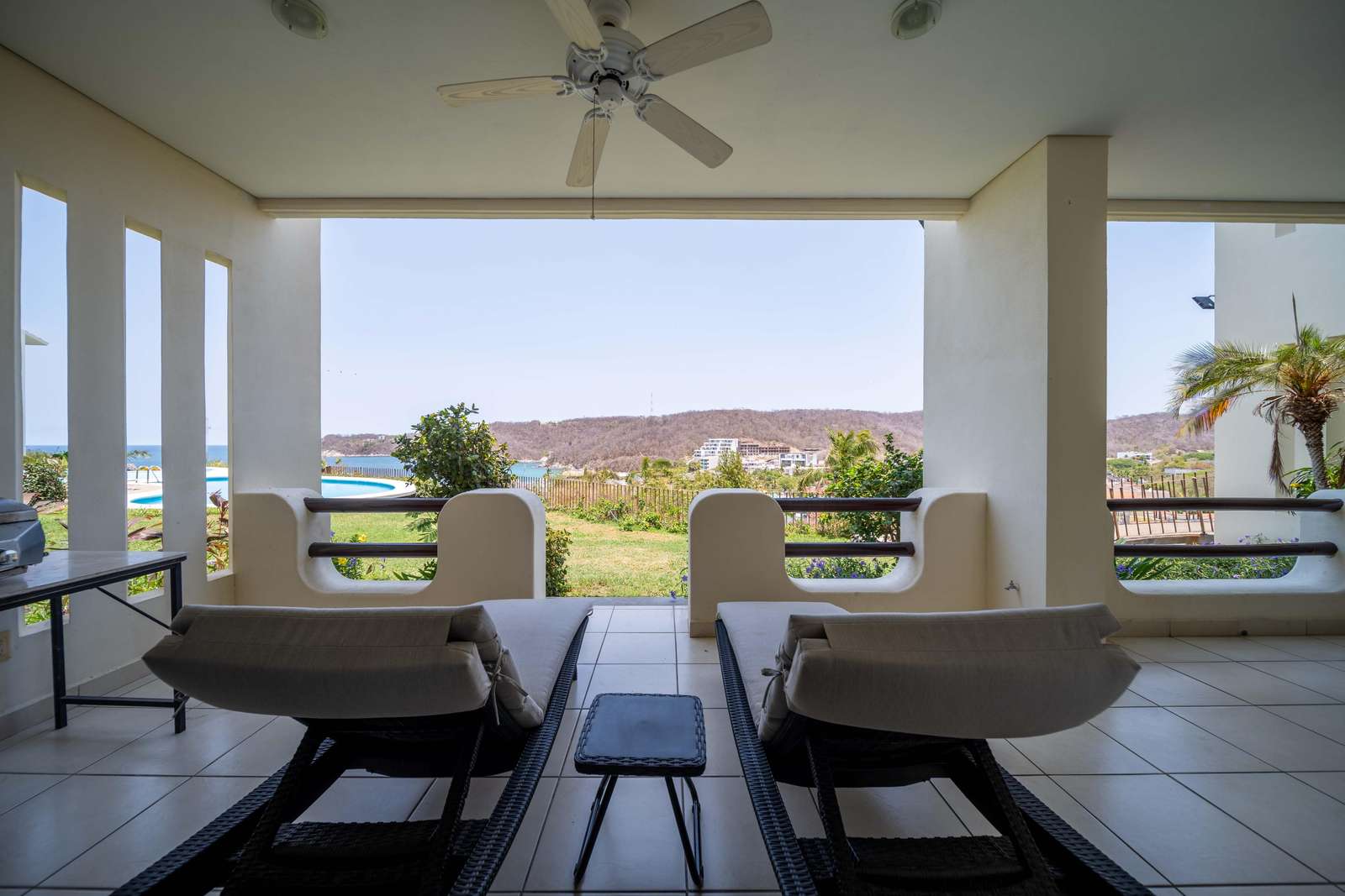 BBQ dinner in the fully equipped kitchen. Enjoy morning coffee and evening margaritas on the large terrace while you bask in the warm tropical breezes and gorgeous ocean views. The master bedroom has a king bed, the second bedroom has two queen beds, and the flex room has a queen pull-out sofa bed. Oceanside’s fantastic location allows you to immerse yourself in the rich culture and beauty of Huatulco. Explore the nine bays and 36 pristine beaches and take in the many activities the area has to offer. The development is within walking distance of many restaurants, shops, and local-style markets. You are a 15-minute walk to the award-winning Chahue Beach and a 25-minute walk to Playa Santa Cruz, a beautiful beach perfect for swimming, snorkeling, kayaking, jet ski rentals, and paddleboarding.