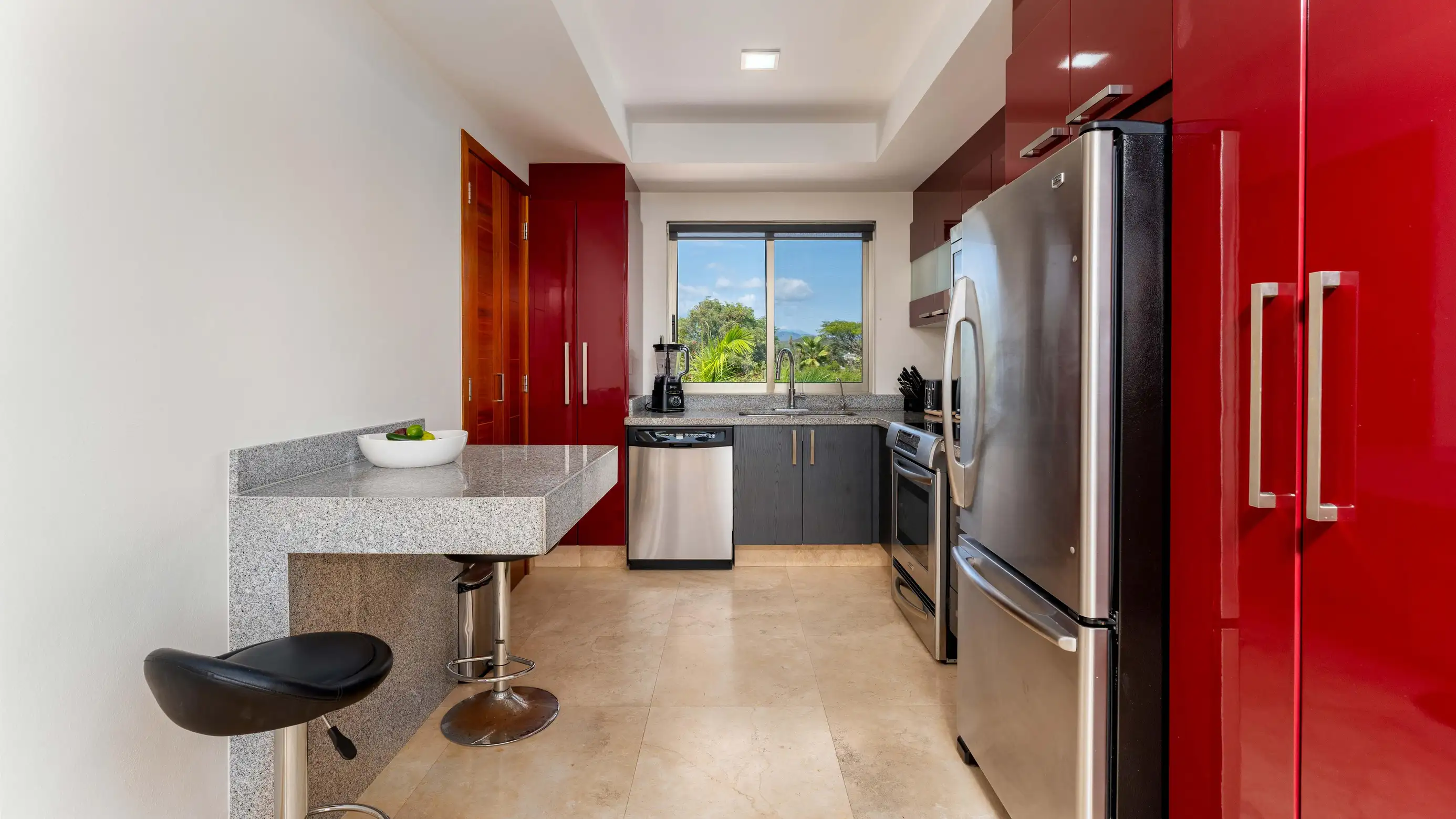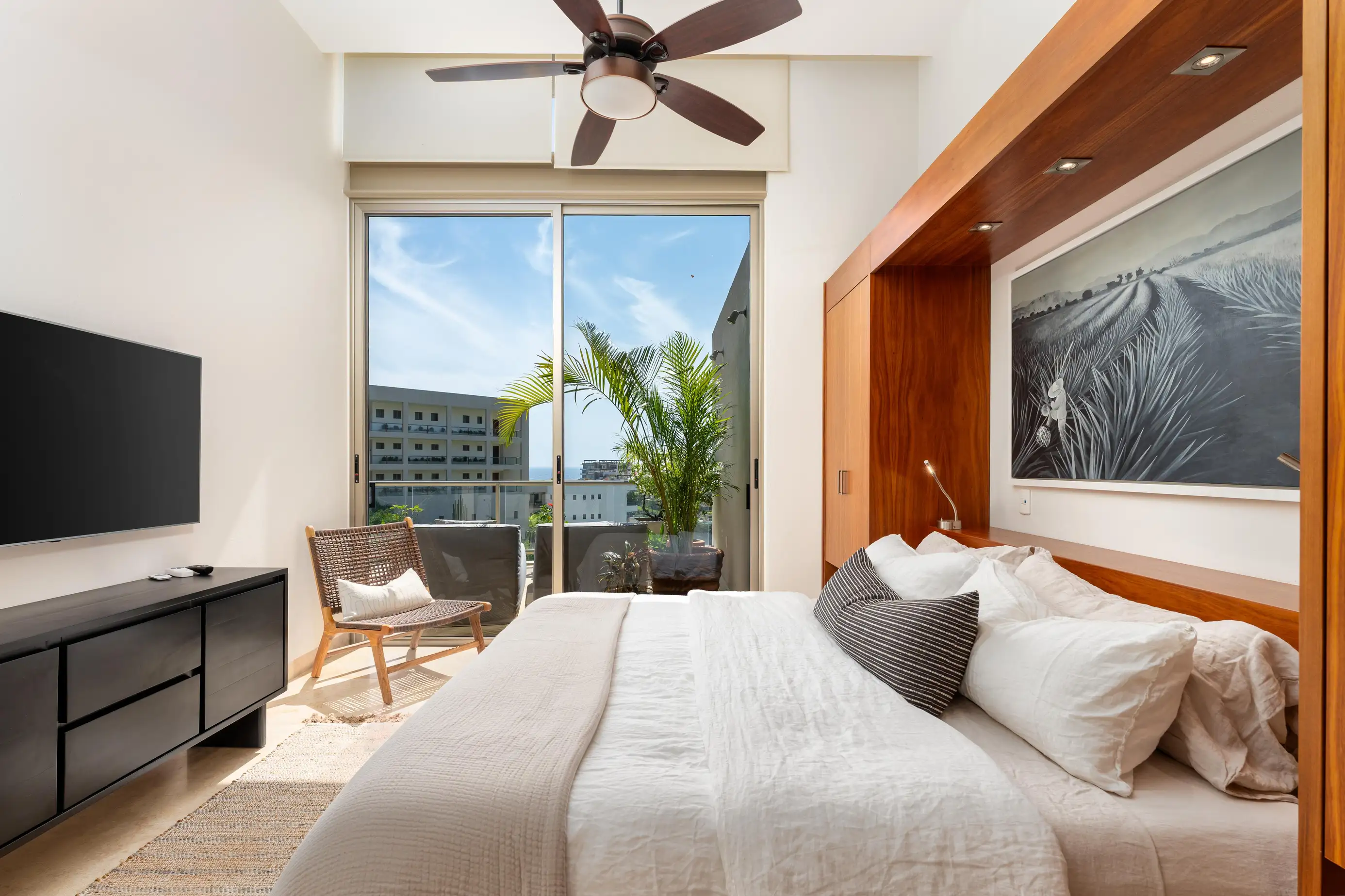 This 2-bedroom penthouse condo boasts contemporary design and modern finishes. Enjoy direct beach access to the swimming beach of Playa Arrocito and on-site amenities including 5 shared pools, a gym, and botanical gardens. Reserve with Bayside today!