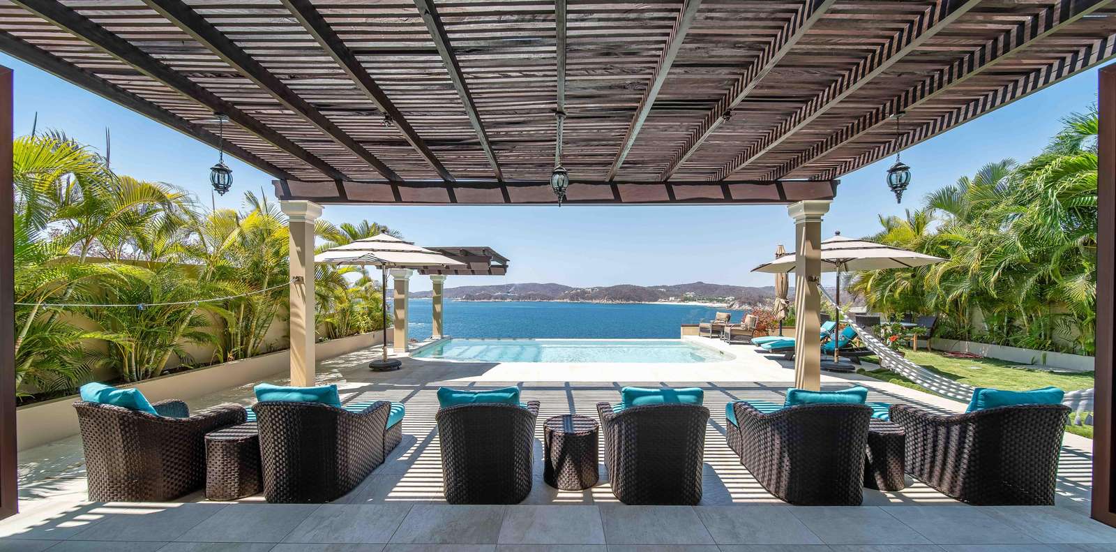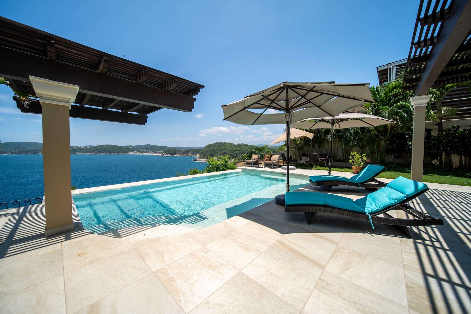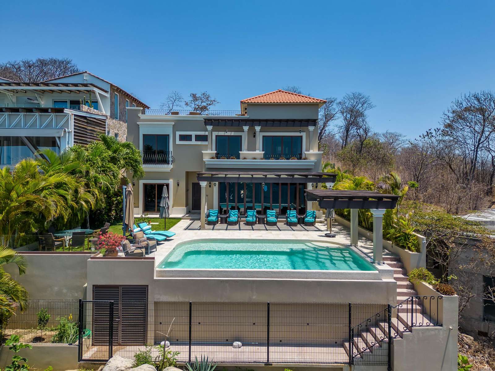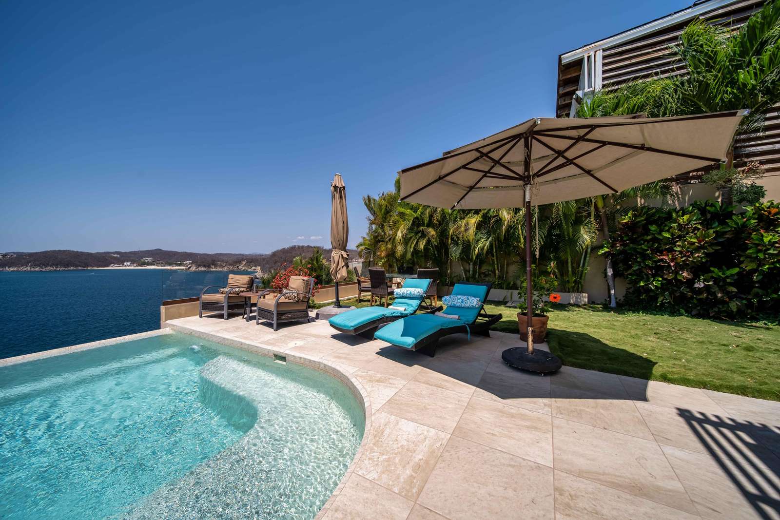 Set on beautifully landscaped grounds, the villa features a stunning infinity pool where you can soak in the tropical breeze and take in breathtaking views of the Pacific. Enter through a dramatic foyer with a tranquil water feature that immediately puts you in vacation mode.