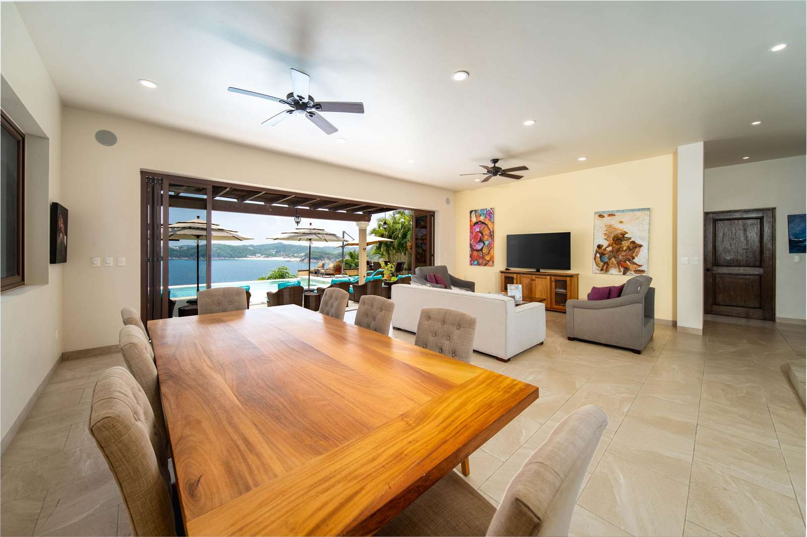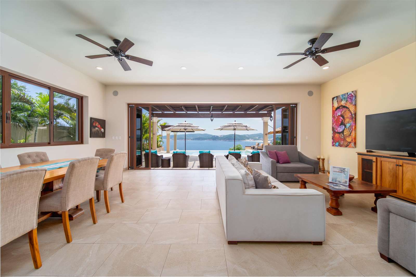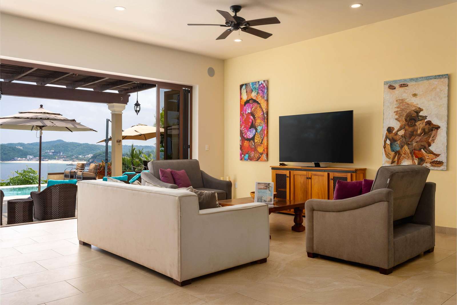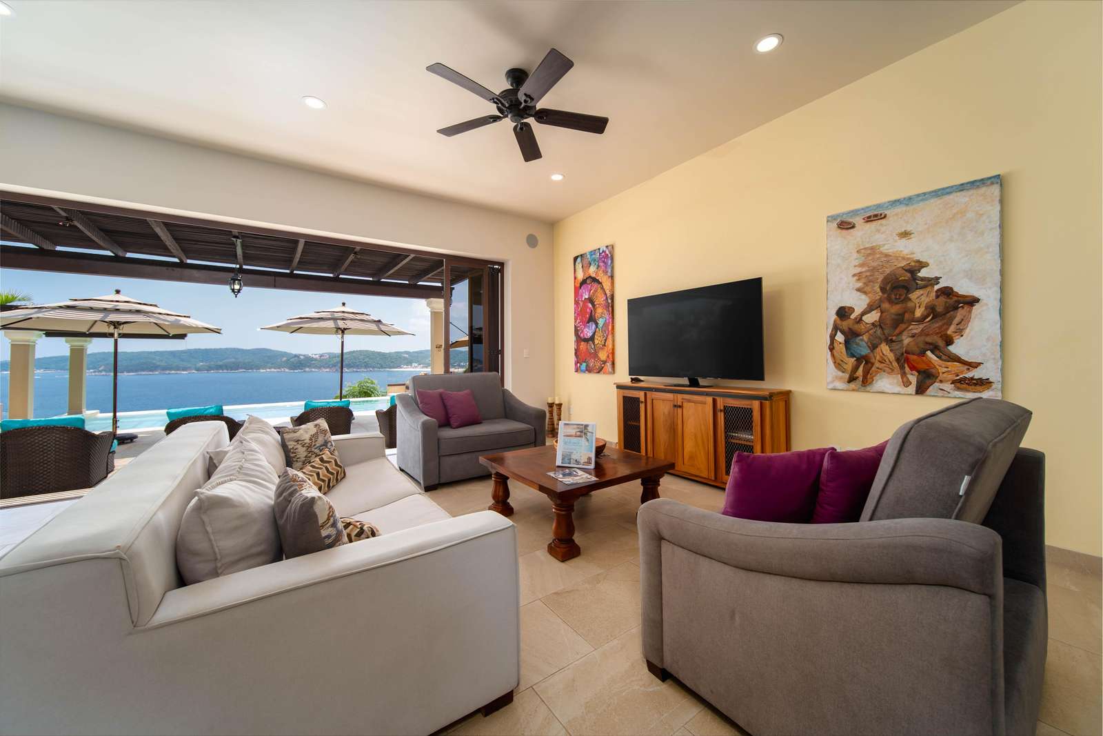 Set on beautifully landscaped grounds, the villa features a stunning infinity pool where you can soak in the tropical breeze and take in breathtaking views of the Pacific. Enter through a dramatic foyer with a tranquil water feature that immediately puts you in vacation mode.