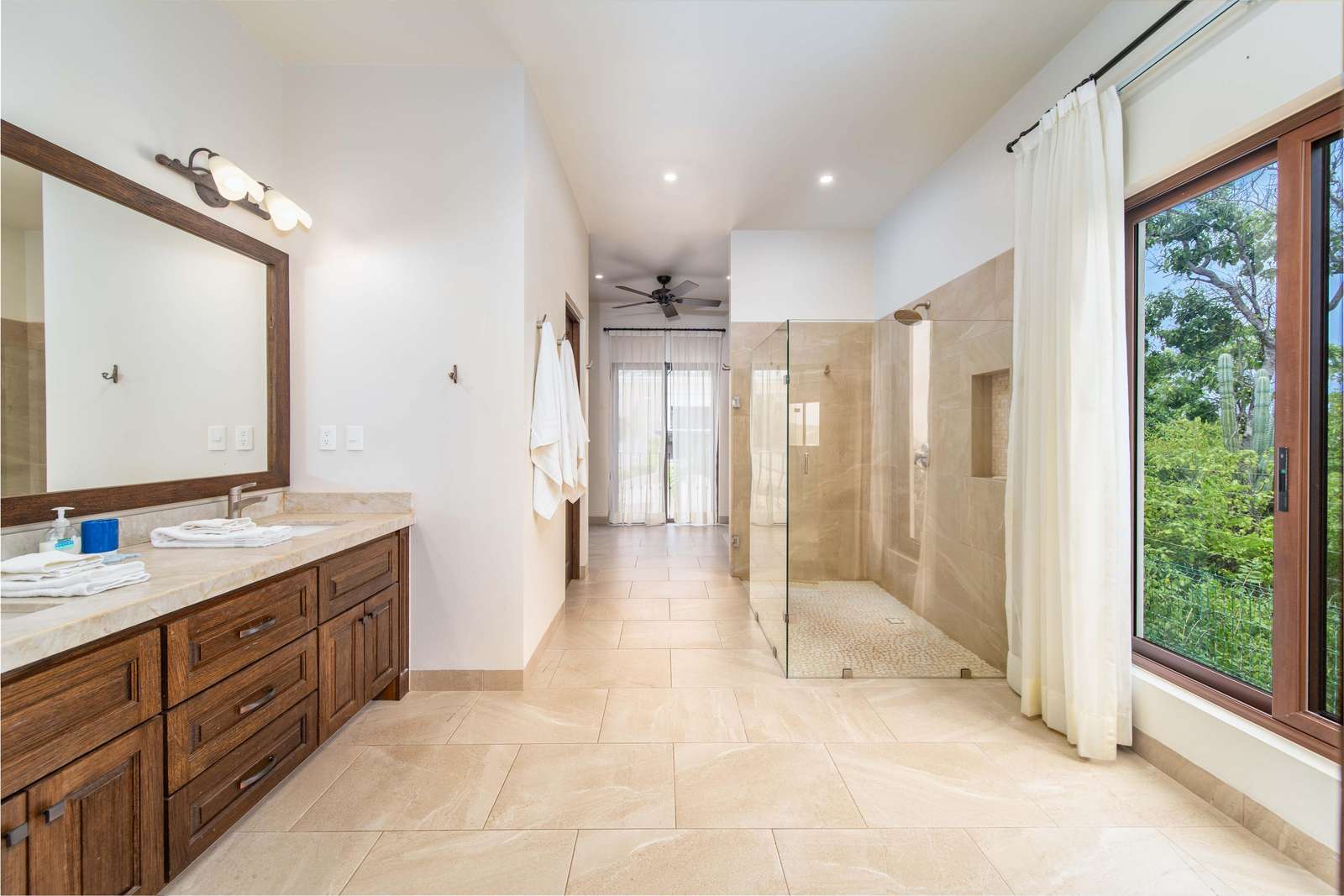 Outside, the expansive terrace invites you to lounge by the infinity pool, dine al fresco, and soak in the ocean views. After a swim, rinse off in the outdoor shower with direct access to the main-floor bathroom.