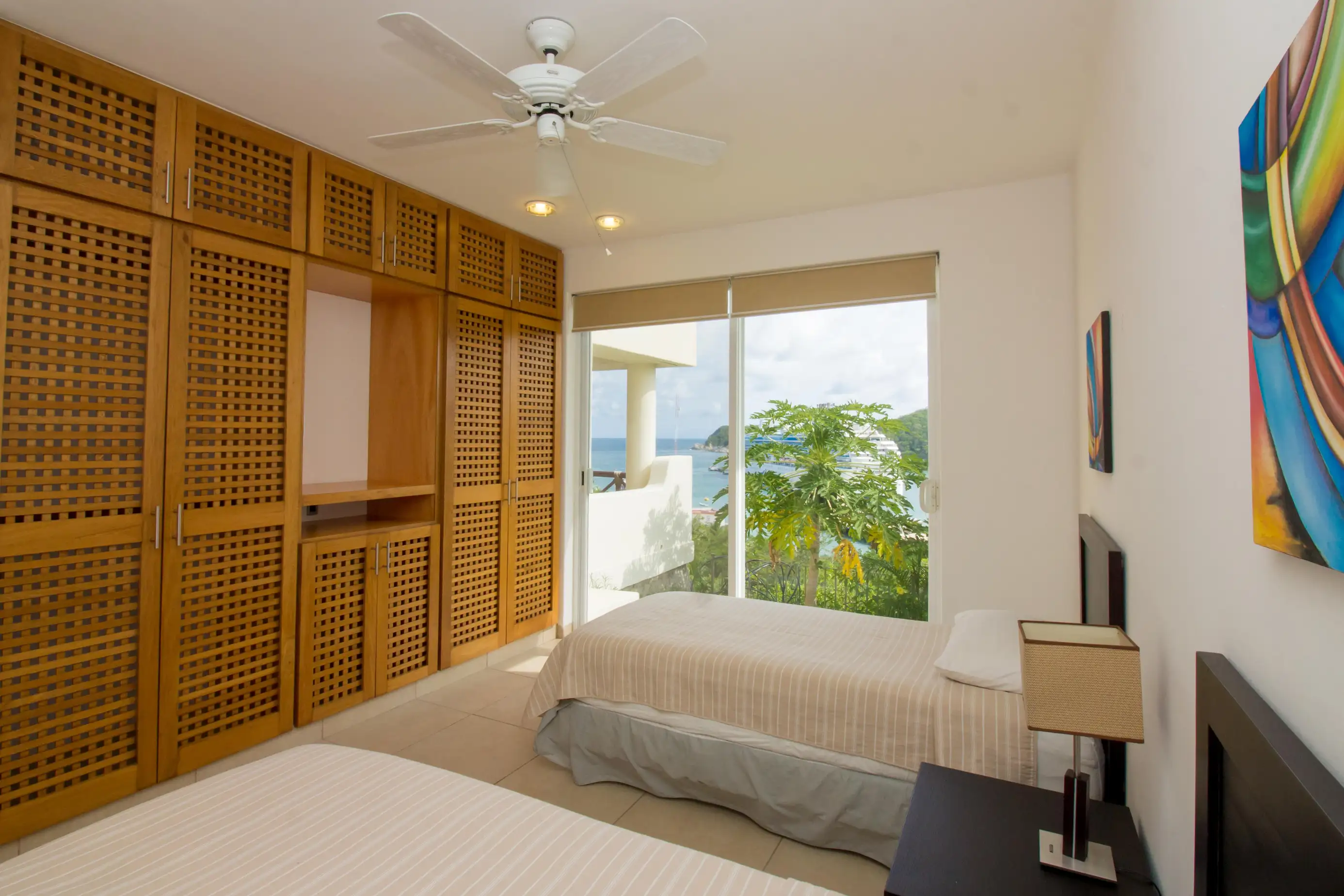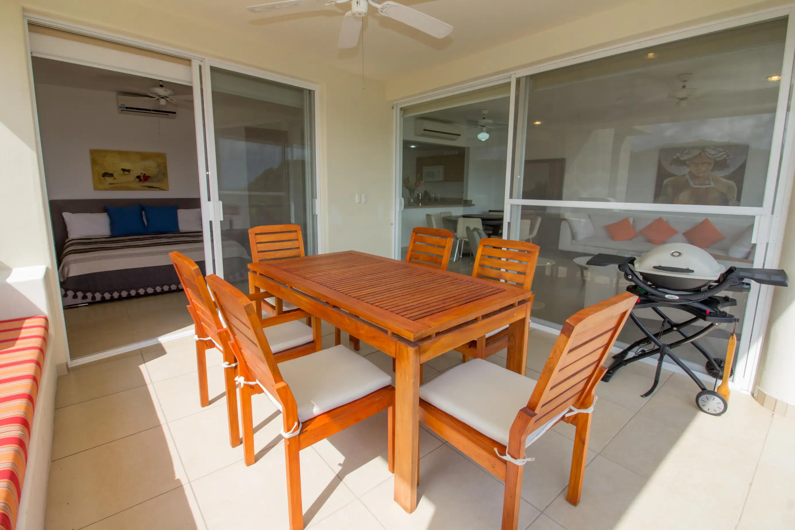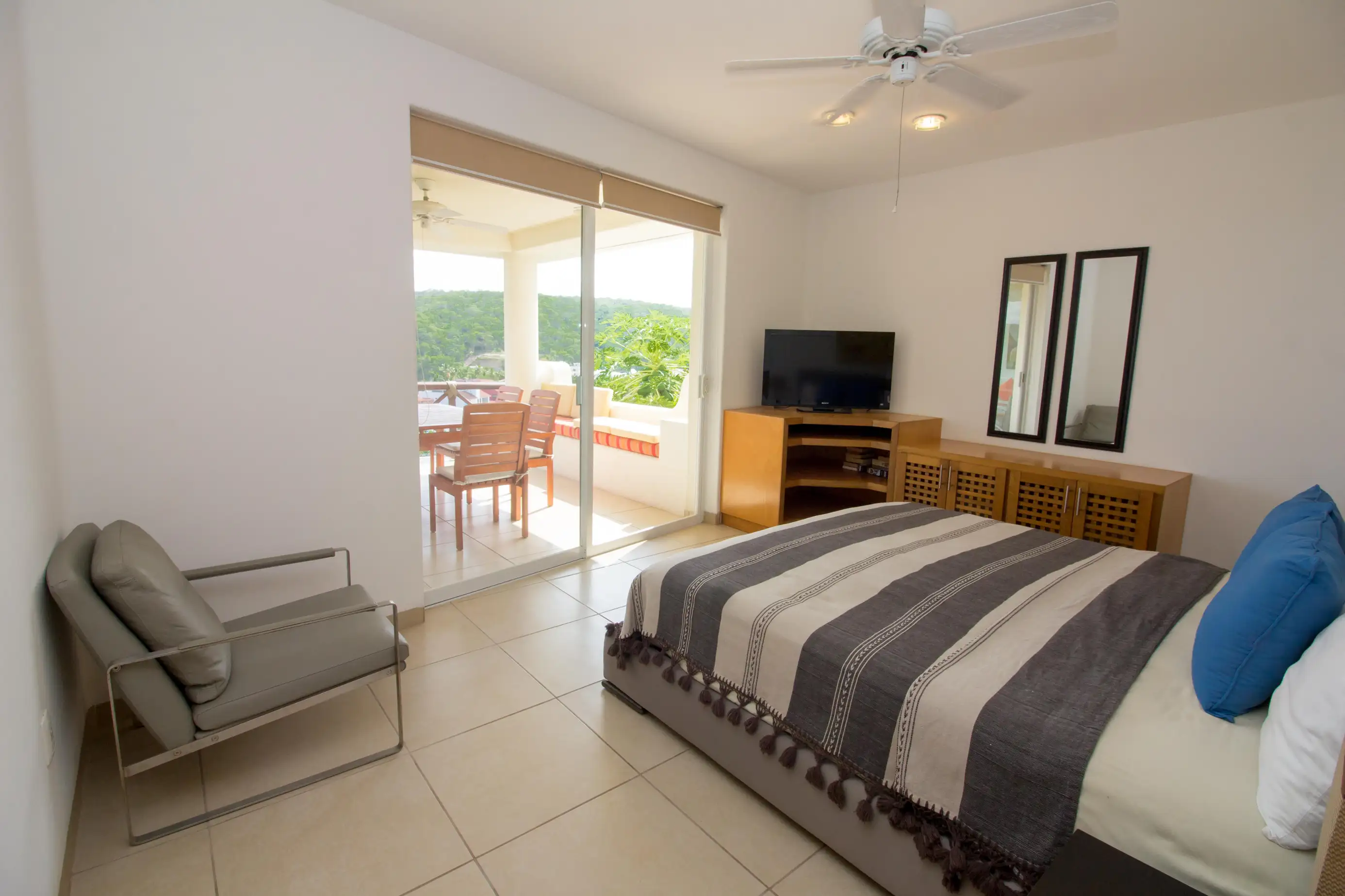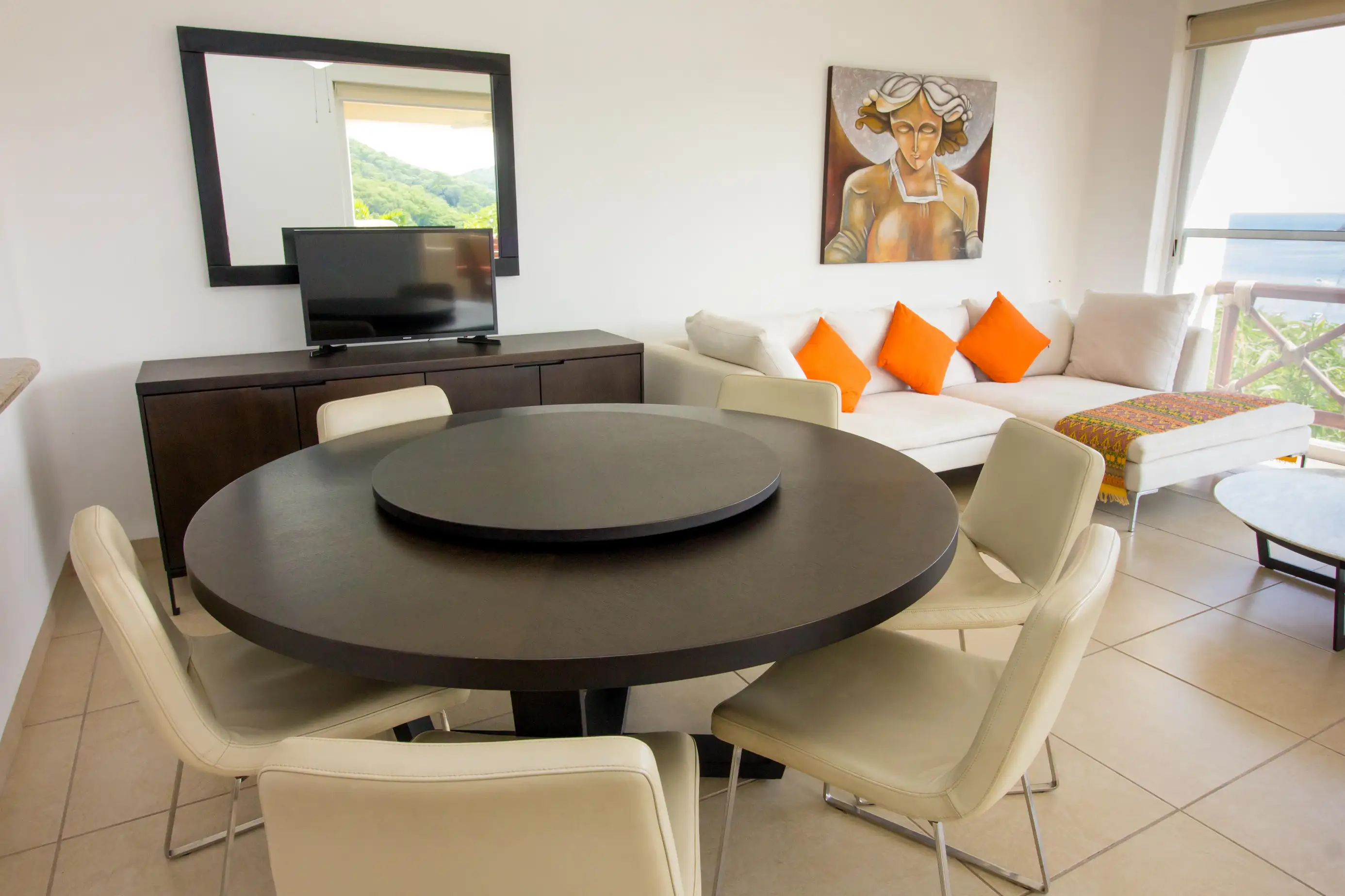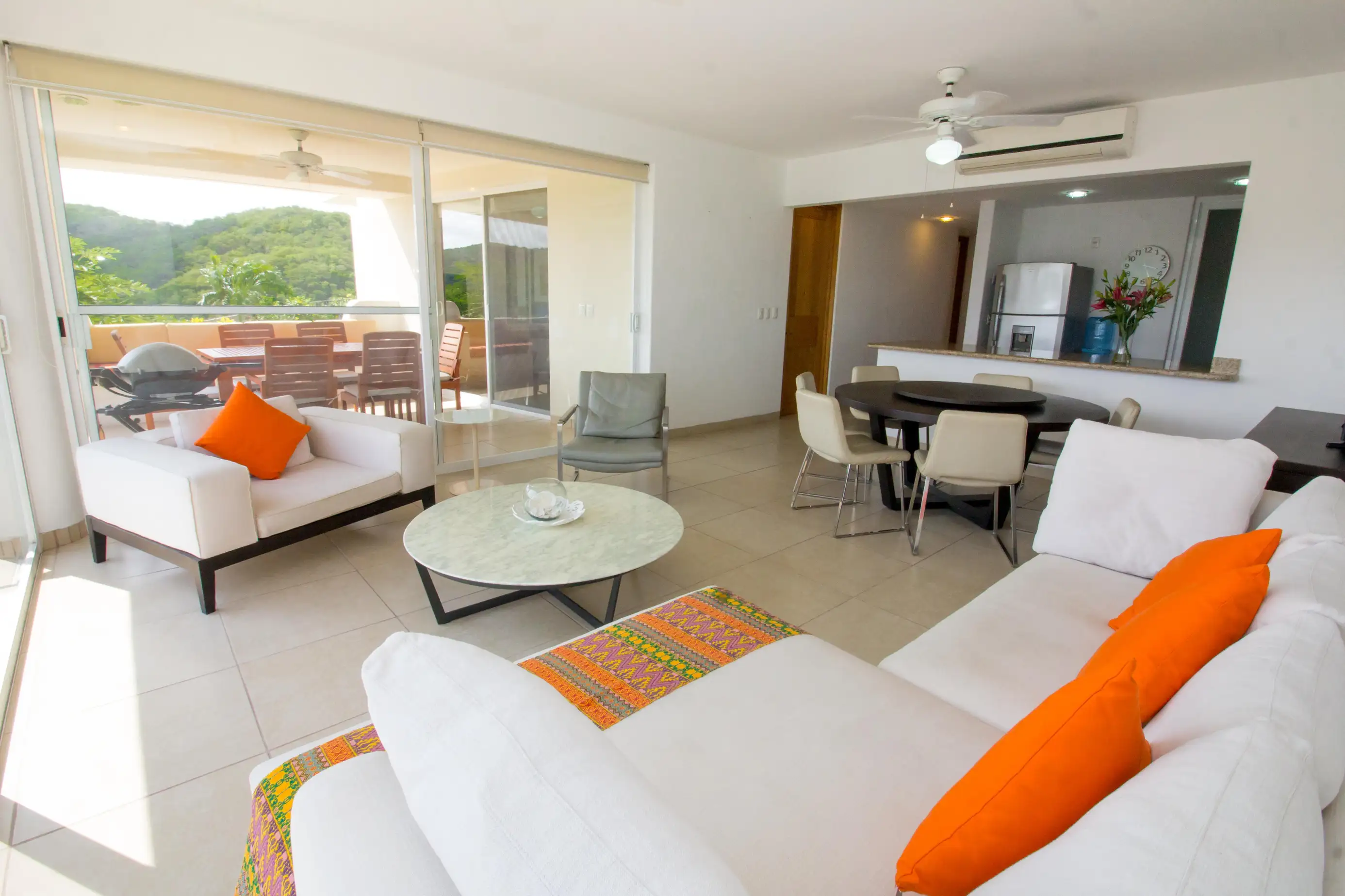 Arrive at the property and enjoy a fully equipped kitchen and comfortable living room area with a SMART TV and beautiful views of the Pacific waters of Marina Santa Cruz.