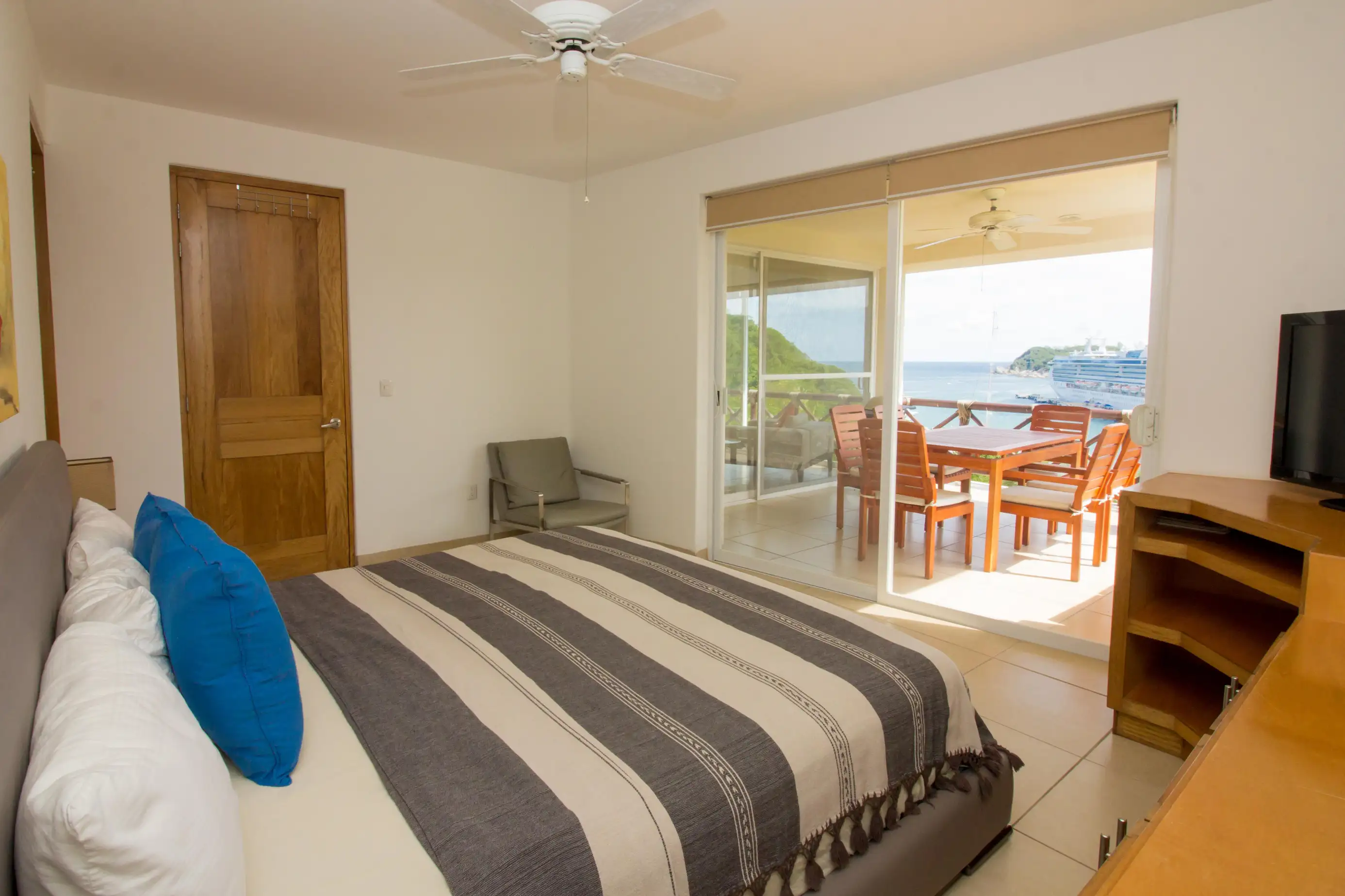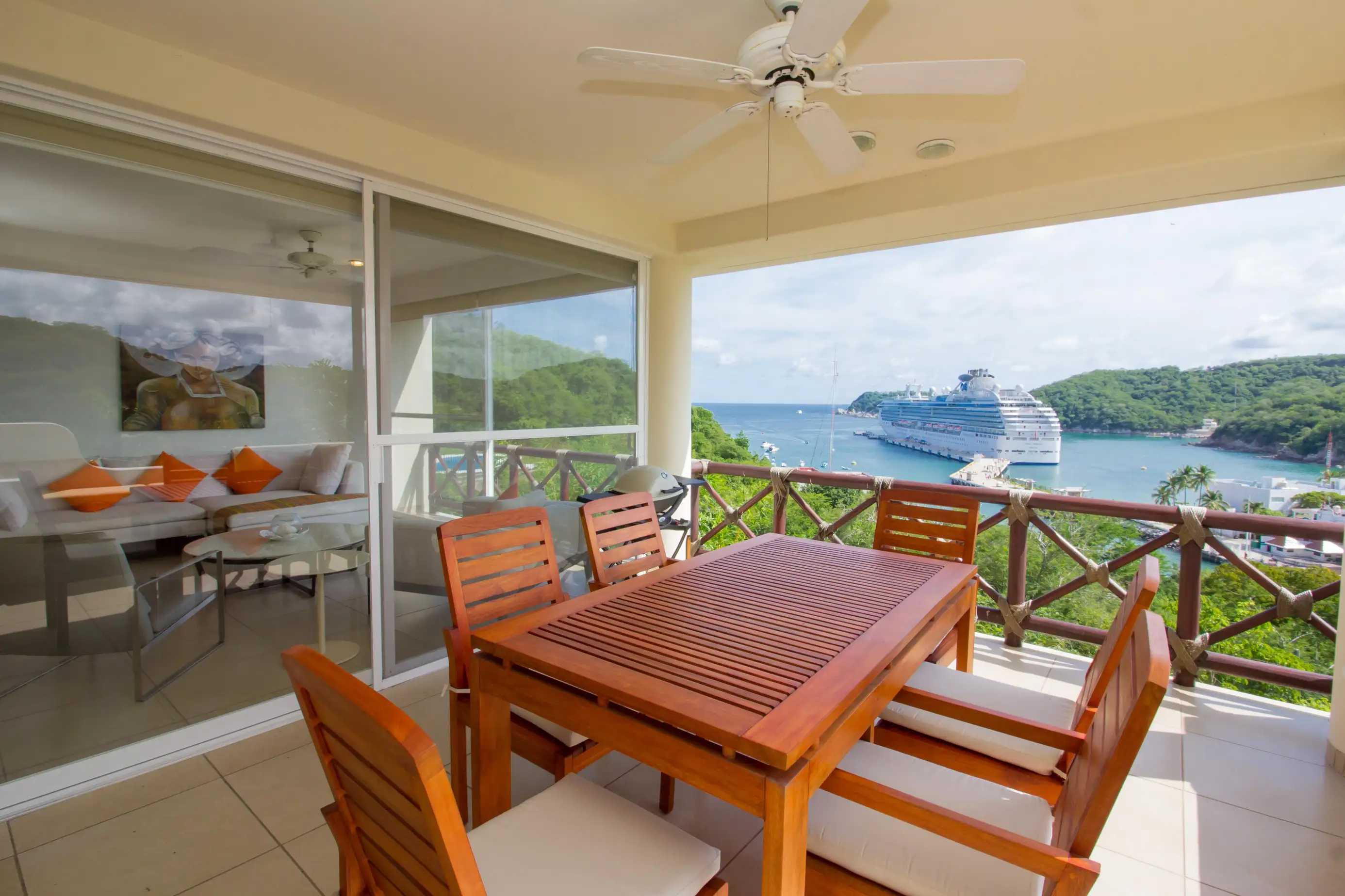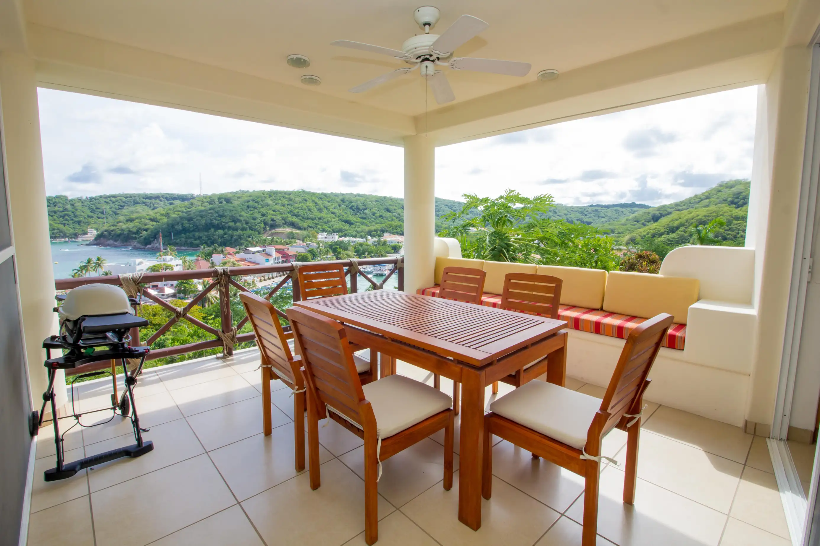 Enjoy a wonderful vacation in this 3-bedroom, 3.5-bathroom oceanfront condo on Punta Santa Cruz. Enjoy the flora and fauna of Santa Cruz and being just steps from a refreshing dip in the pool. Relax, unwind, and enjoy your Huatulco vacation!