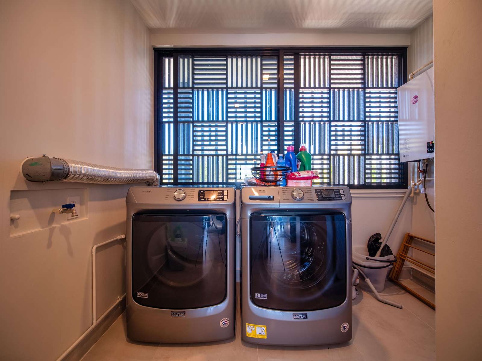 Step into a fully equipped kitchen, complete with everything you need to prepare meals at home. A full-size washer and dryer are conveniently located in the laundry room off the kitchen. The dining area features a round table as well as island seating for everyone. In the living room, stretch out on a cozy double sofa bed and enjoy your favorite shows on the SMART TV.